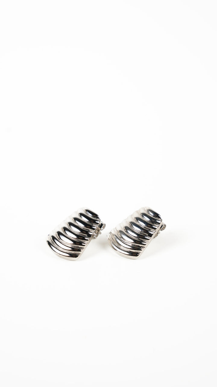 Embrace modern glamor with our Silver Frost Peak Studs. Shaped like sleek peaks, these striking earrings boast sophisticated horizontal grooves and are crowned with an exquisite scattering of sparkling crystals, evoking the beauty of a frosty summit. Their polished silver finish offers a crisp, contemporary shine, perfect for elevating your everyday or evening attire.