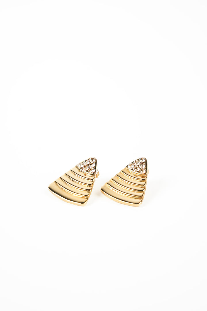 Reach new heights of style with our Gold Frost Peak Studs. These unique triangular earrings feature elegant horizontal ridges and are topped with a brilliant cluster of crystals, sparkling like fresh frost on a mountaintop. The radiant gold finish adds a touch of warm luxury, making them a captivating accent for any look.
