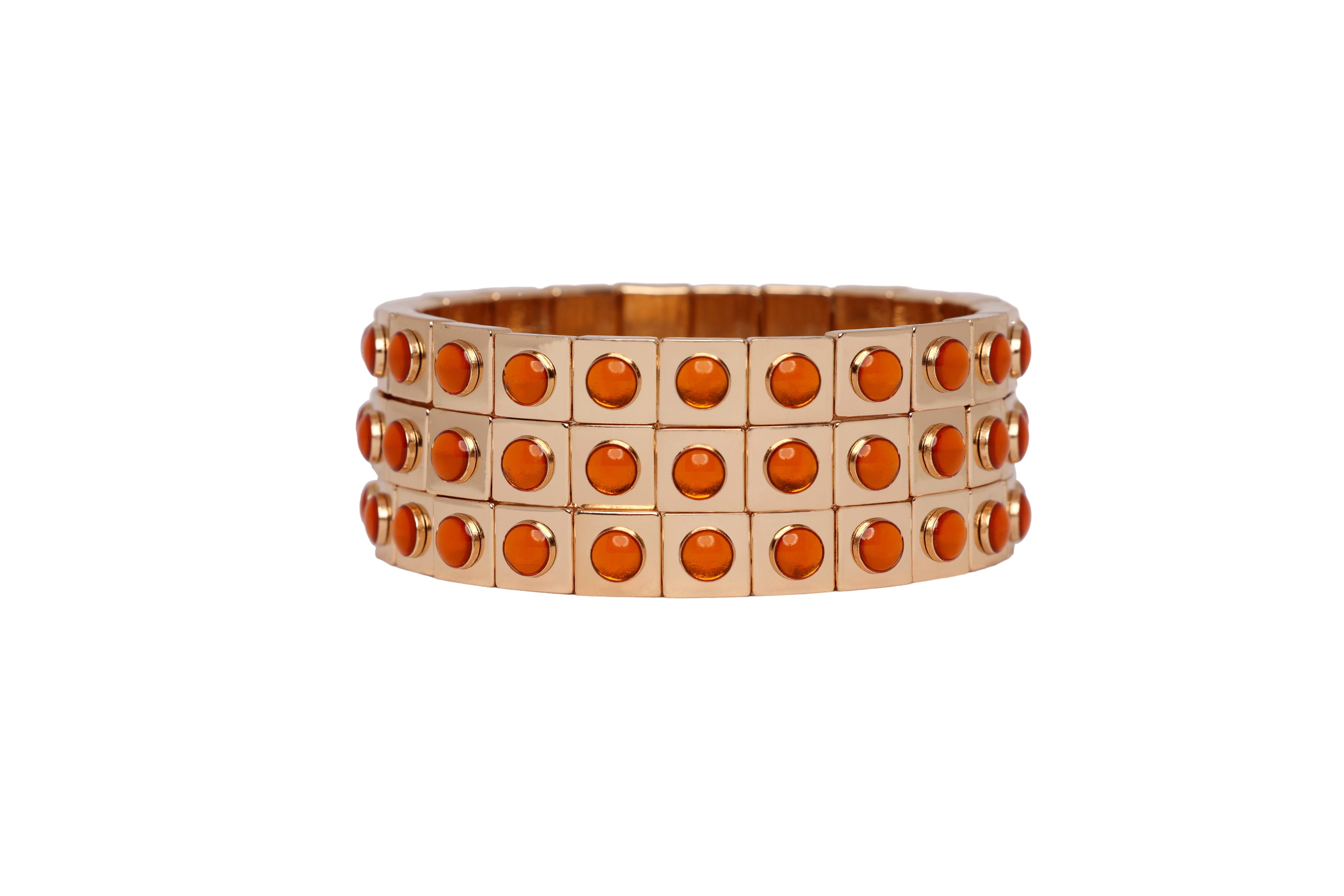 Radiate warmth and elegance with the Golden Sunset Bracelet, a stunning gold-plated piece adorned with rich amber-orange stones. Inspired by the glow of a sunset, this bracelet adds a luminous touch to any look — perfect for day-to-night sophistication.