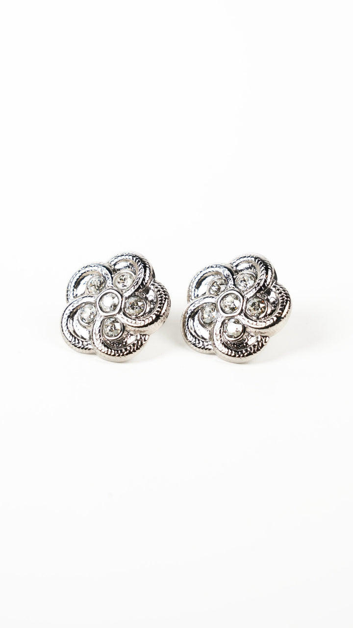 These lovely earrings boast an intricate floral design, set with dazzling clear crystals that catch the light. The cool silver finish adds a sophisticated touch, making them a versatile accessory for both everyday wear and special occasions.